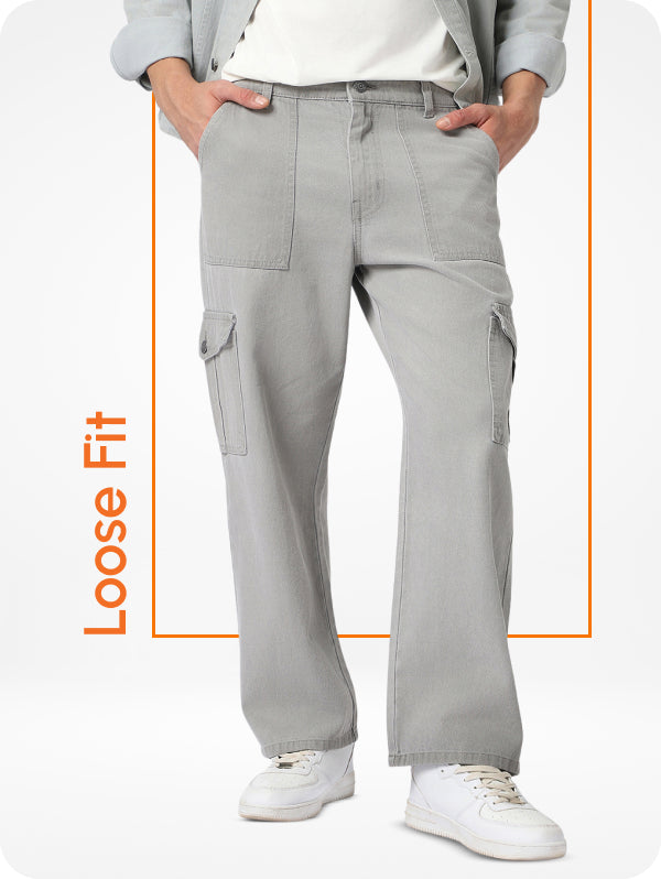 Men's Grey Loose Fit Washed Jeans Non-Stretchable