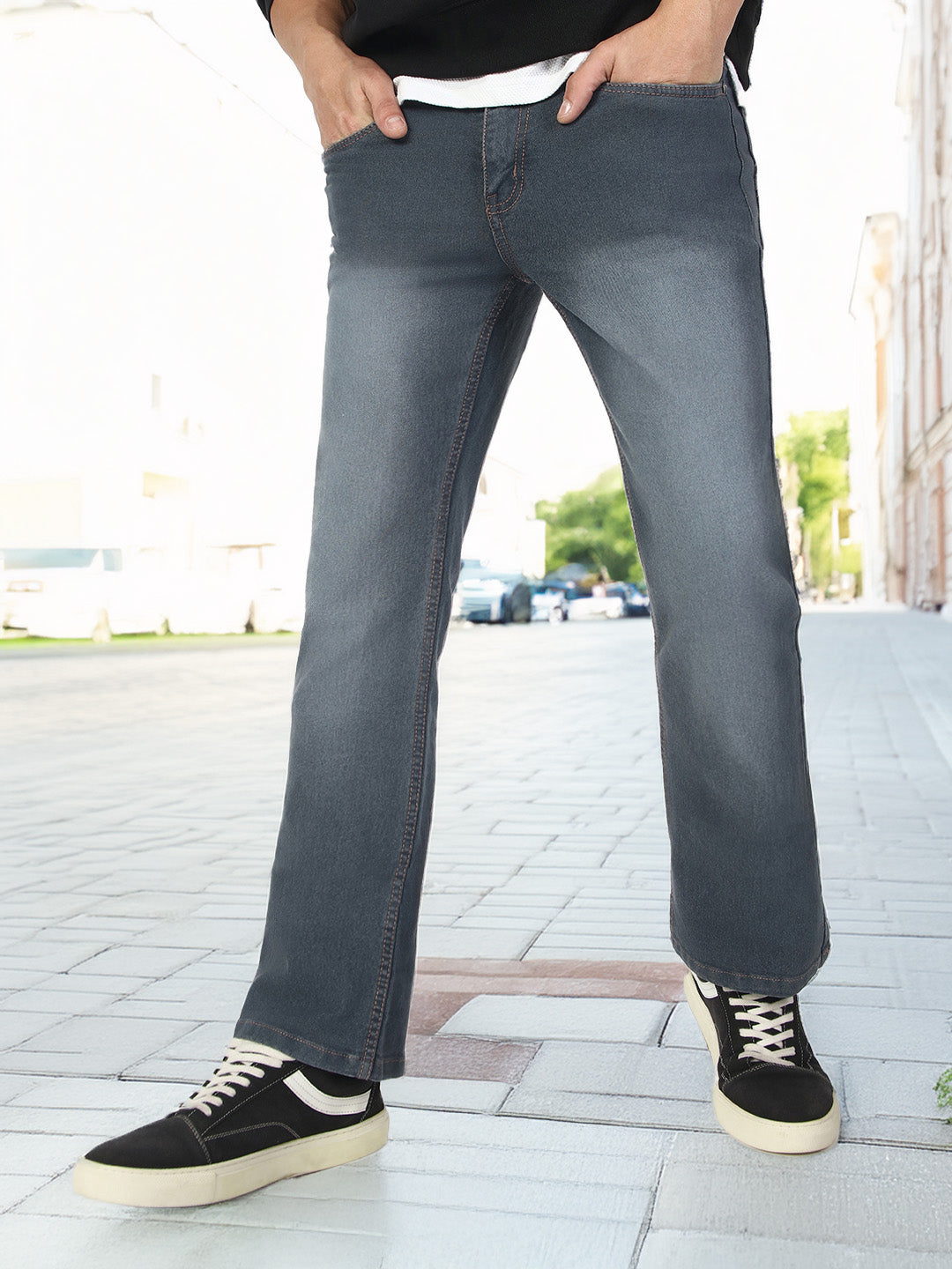 Men's Dark Grey Washed Bootcut Jeans Stretchable