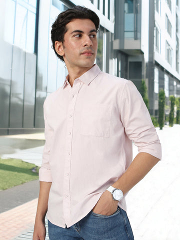 Men's Baby Pink Cotton Full Sleeve Regular Fit Casual Solid Shirt