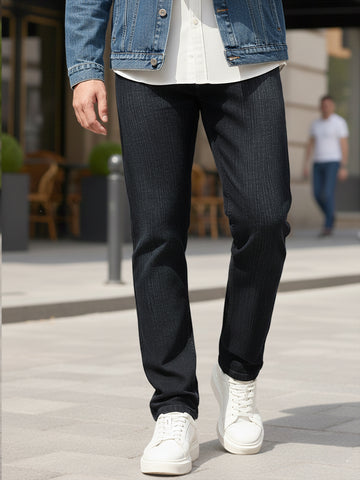 Men's Black Straight Fit Washed Denim Jeans Stretchable