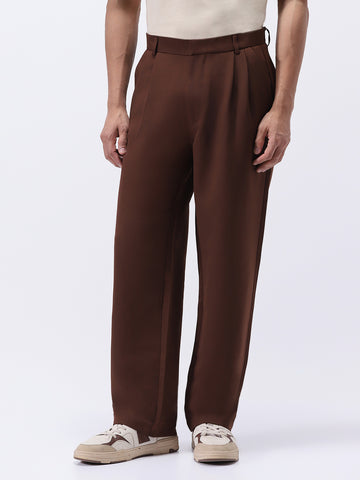 Men's Brown Loose Baggy Fit Solid Korean Pants Stretchable