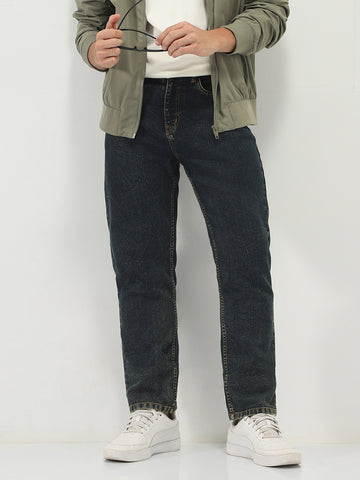 Men's Dark Blue Straight Fit Heavy Washed Jeans Stretchable
