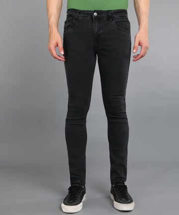 Men's Dark Grey Regular Fit Washed Jeans Stretchable