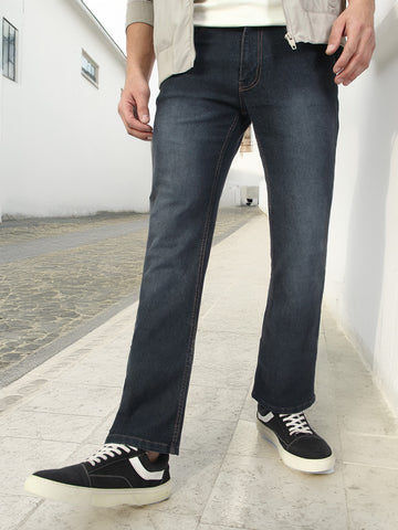 Men's Dark Grey Washed Bootcut Jeans Stretchable