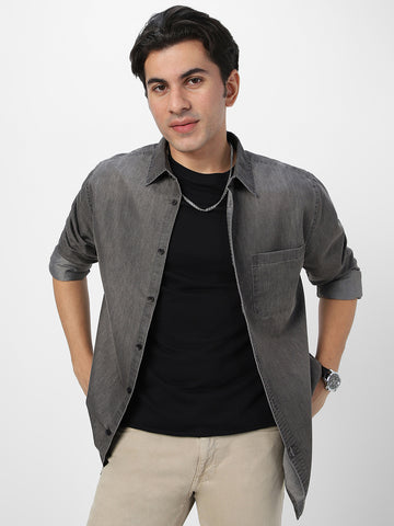 Men's Grey Full Sleeve Regular Fit Casual Denim Shirt