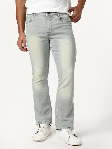 Men's Ice Grey Bootcut Fit Mid Rise Tinted Heavy Washed Jeans Stretchable