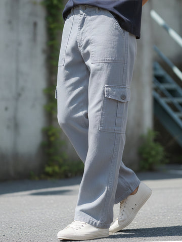 Men's Ice Grey Loose Fit Cargo Jeans with 6 Pockets Non-Stretchable