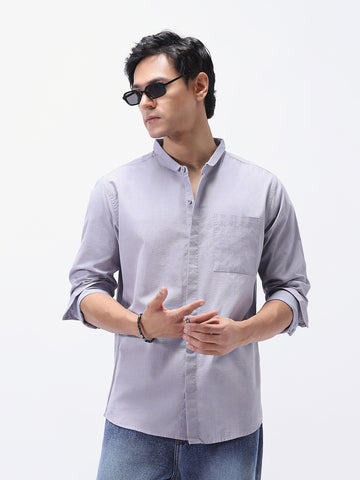 Men's Lavender Cotton Full Sleeve Regular Fit Casual Solid Shirt with Band Collar