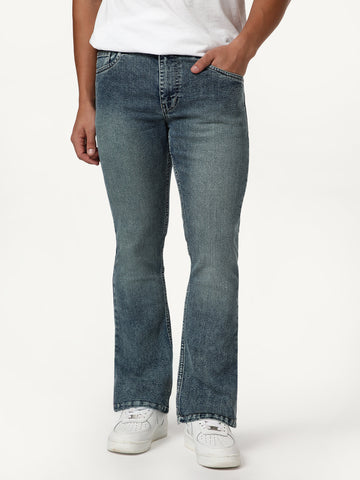 Men's Light Blue Bootcut Fit Mid Rise Tinted Heavy Washed Jeans Stretchable