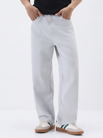 Men's Light Grey Loose Fit Washed Jeans Non-Stretchable