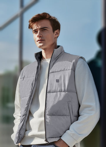 Men's Light Grey Sleeveless Zippered Puffer Jacket