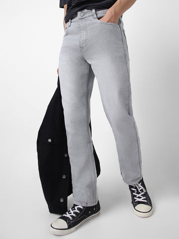 Men's Light Grey Straight Fit Washed Jeans Stretchable