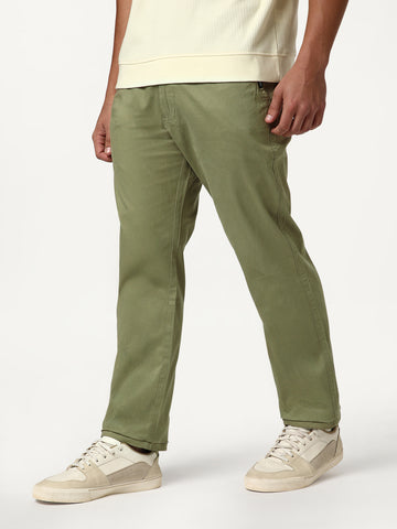 Men's Light Olive Straight Fit Mid Rise Cotton Casual Chinos Trousers Stretch