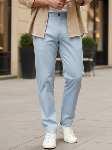 Men's Light Sky Blue Cotton Regular Fit Casual Chinos Trousers Stretch