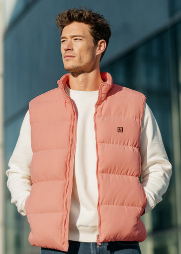 Men's Pink Sleeveless Zippered Puffer Jacket