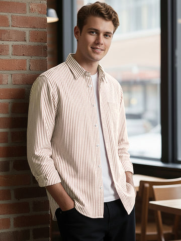 Men's Pumpkin Spice Cotton Full Sleeve Regular Fit Casual Striped Shirt