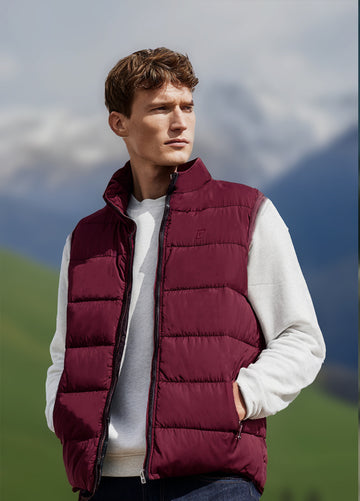 Men's Red Sleeveless Zippered Puffer Jacket