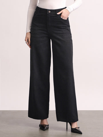 Women's Black High Rise Loose Baggy Fit Washed Jeans Non-Stretchable