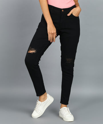 Women's Black Skinny Fit Mild Distressed Washed Jeans