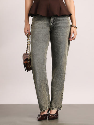 Women's Ice Grey High Rise Straight Fit Washed Jeans Non-Stretchable