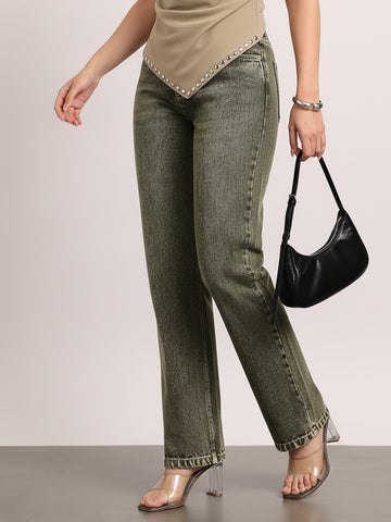 Women's Light Grey High Rise Straight Fit Washed Jeans Non-Stretchable