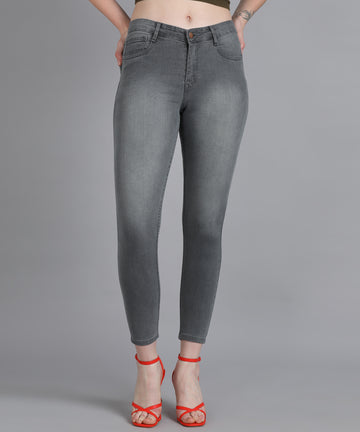 Women's Light Grey Skinny Fit Washed Jeans