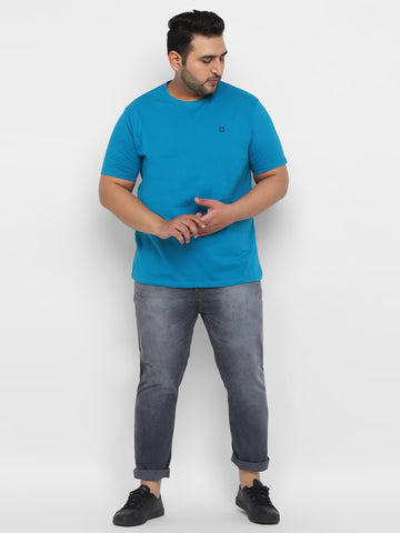 Plus Men's Aqua Blue Solid Regular Fit Round Neck Cotton T-Shirt