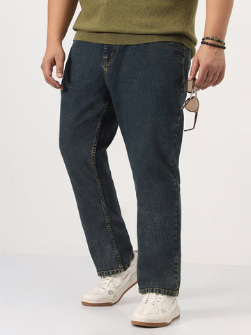 Plus Men's Blue Straight Fit Heavy Washed Jeans Stretchable
