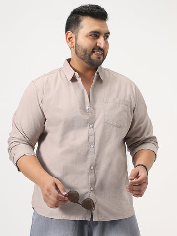 Plus Men's Brown Cotton Full Sleeve Regular Fit Casual Solid Slub Shirt with Spread Collar