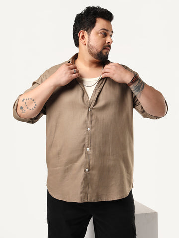 Plus Men's Coffee Linen Blend Full Sleeve Relaxed Fit Casual Solid Shirt