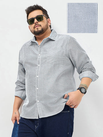 Plus Men's Dark Blue Cotton Full Sleeve Regular Fit Casual Striped Shirt