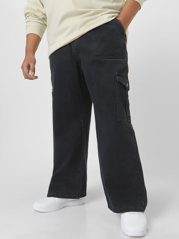 Plus Men's Dark Grey Loose Fit Cargo Jeans with 6 Pockets Non-Stretchable