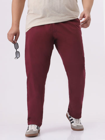Plus Men's Dark Maroon Cotton Regular Fit Casual Chinos Trousers Stretch