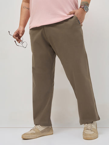 Plus Men's Dark Taupe Straight Fit Mid Rise Cotton Casual Chinos Trousers Stretch