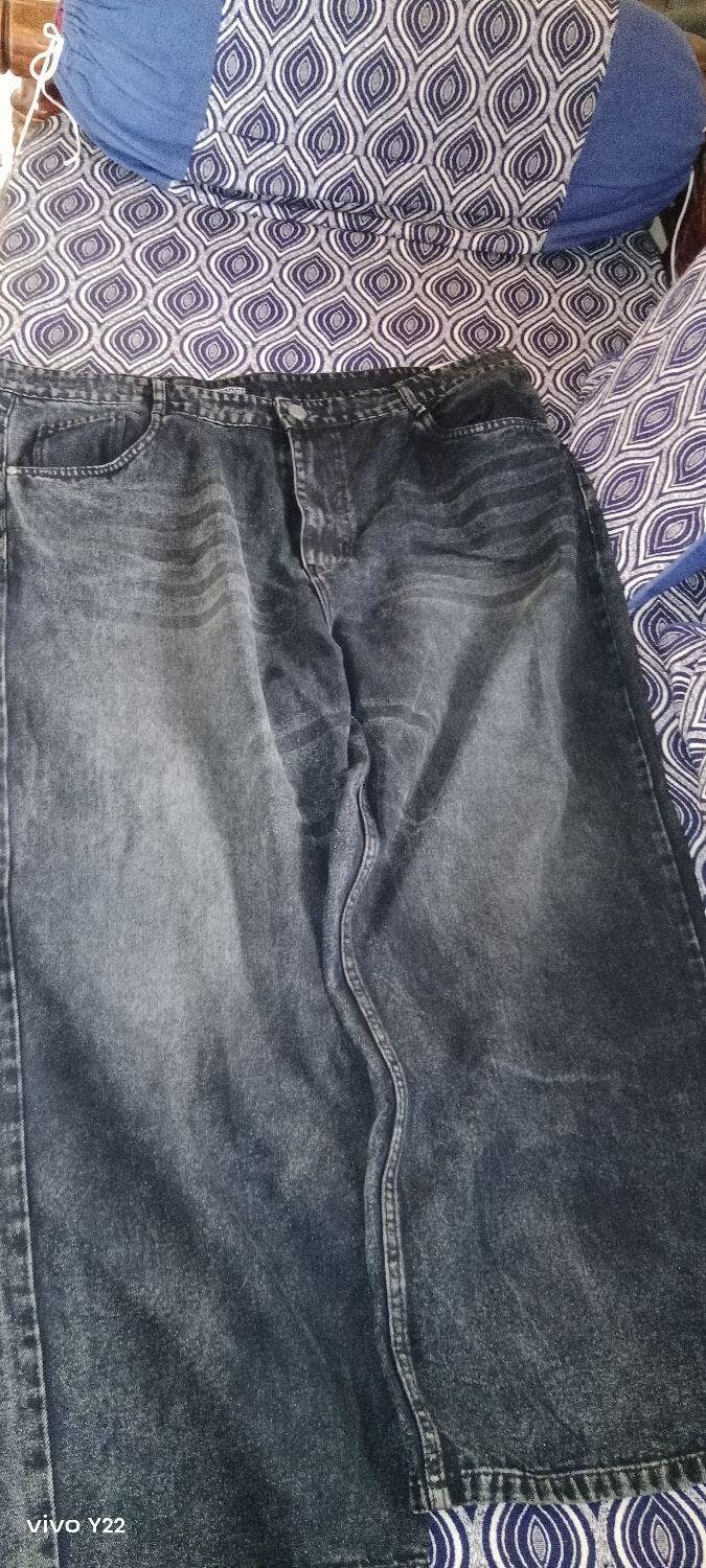 Plus Men's Grey Loose Baggy Fit Heavy Washed Jeans Non-Stretchable