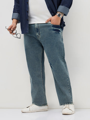 Plus Men's Ice Blue Regular Fit Acid Washed Denim Jeans Stretchable