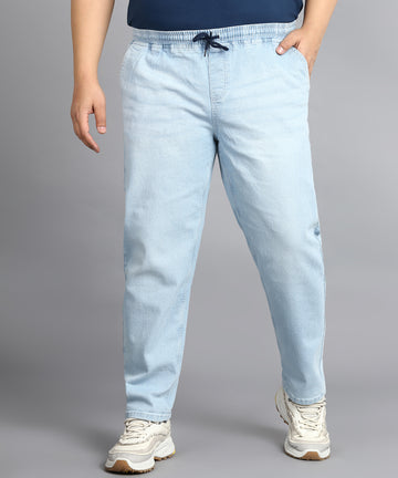 Plus Men's Ice Blue Regular Fit Washed Jogger Jeans Stretchable