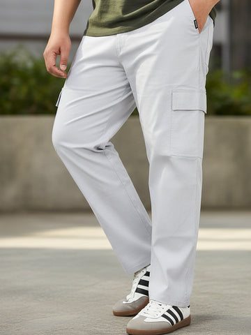 Plus Men's Ice Grey Regular Fit Solid Cargo Chino Pant with 6 Pockets Stretchable