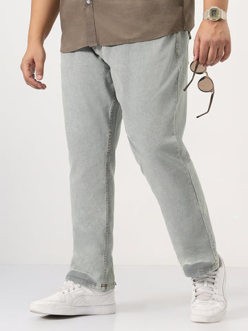 Plus Men's Ice Grey Straight Fit Heavy Washed Jeans Stretchable