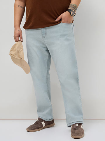 Plus Men's Ice Grey Straight Fit Washed Denim Jeans Stretchable