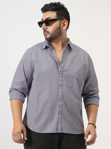 Plus Men's Lavender Cotton Full Sleeve Regular Fit Casual Solid Slub Shirt with Spread Collar