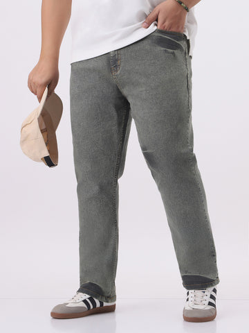 Plus Men's Light Grey Straight Fit Heavy Washed Jeans Stretchable