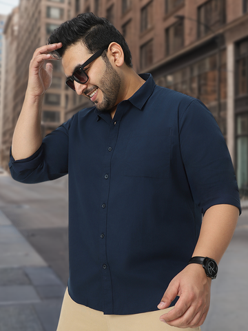 Plus Men's Navy Cotton Full Sleeve Regular Fit Casual Solid Shirt