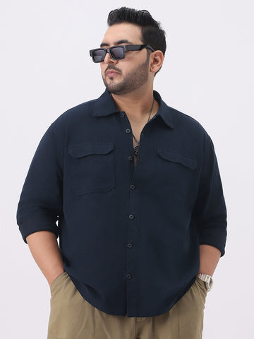 Plus Men's Navy Cotton Full Sleeve Relaxed Fit Shacket with Utility Pockets