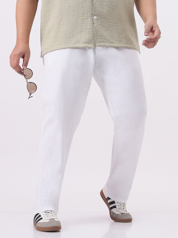 Plus Men's White Cotton Regular Fit Casual Chinos Trousers Stretch