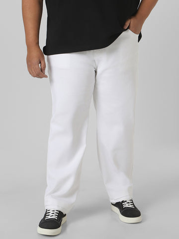 Plus Men's White Regular Fit Washed Jeans Stretchable